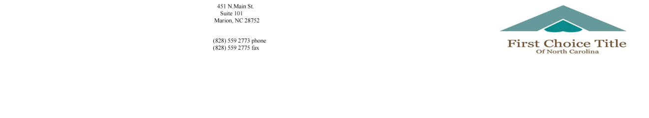 Mission StatementFirst Choice Title of North Carolina is not owned by any bank, builder, real estate company or title underwriter. We are a small independently owned title agency whose only goal is to deliver outstanding service to our clients. We do not do real estate closings and we fully support North Carolina's attorney system. Our primary mission is to focus on you, our client, to provide you with unprecedented courteous, proficient and professional service.With our databank of back title policies, leading edge automation, extensive forms library and experienced title underwriters, we can ensure that your experience in obtaining title insurance from us will be a pleasant one.
